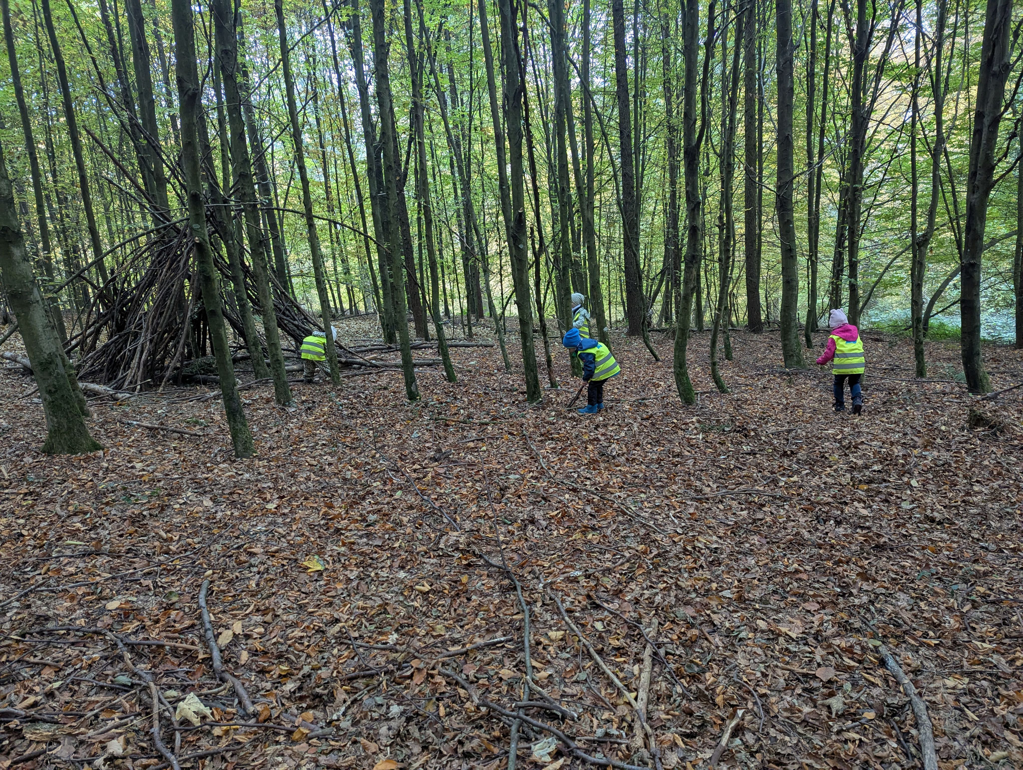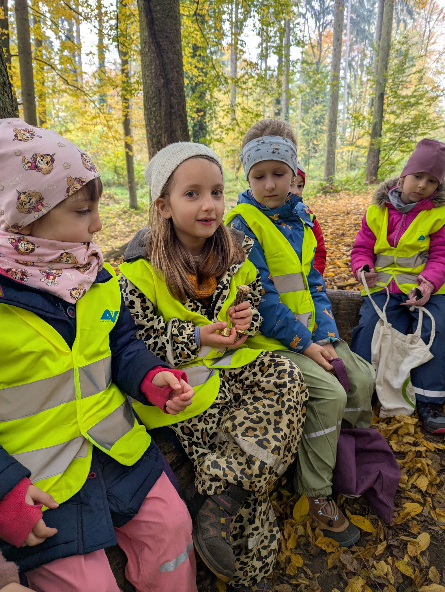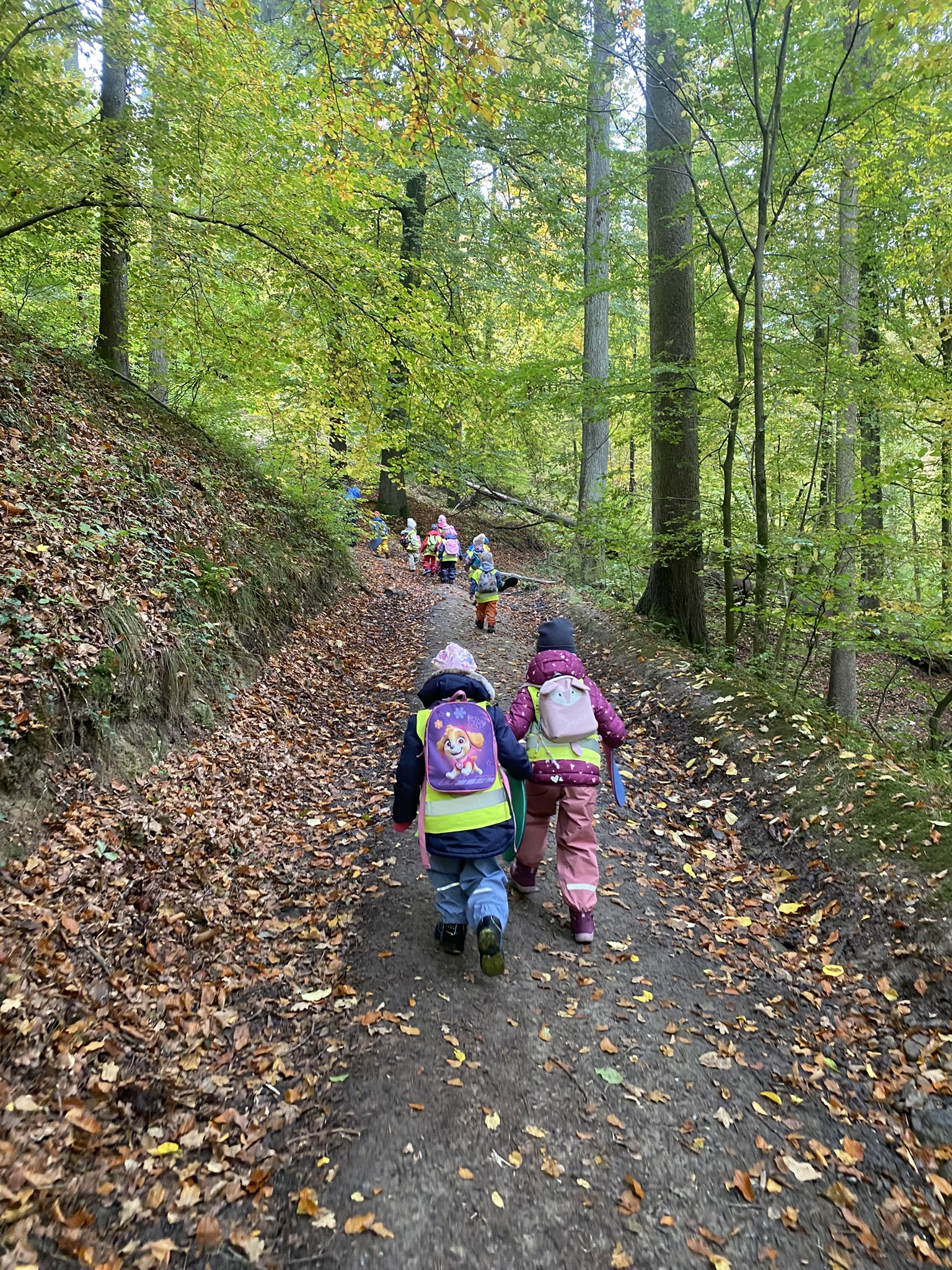 Heute ist unser zweiter Waldtag. Alle wissen schon wie wir zum Wald kommen und freuen sich auf den Tag.