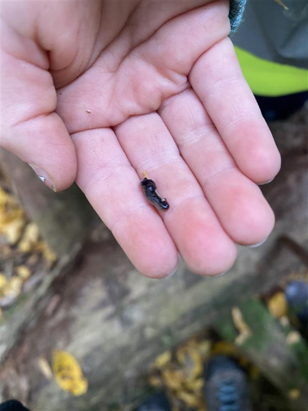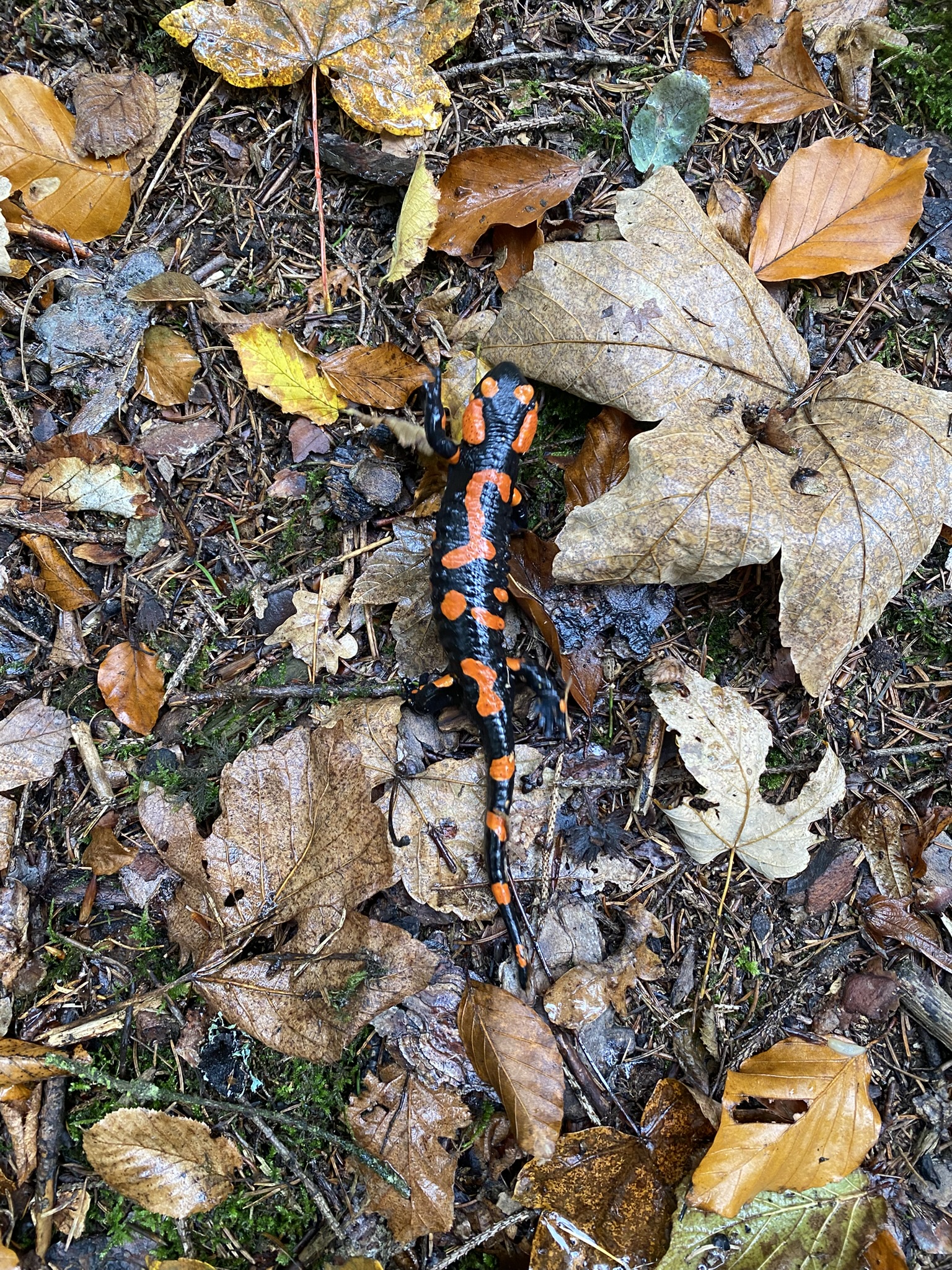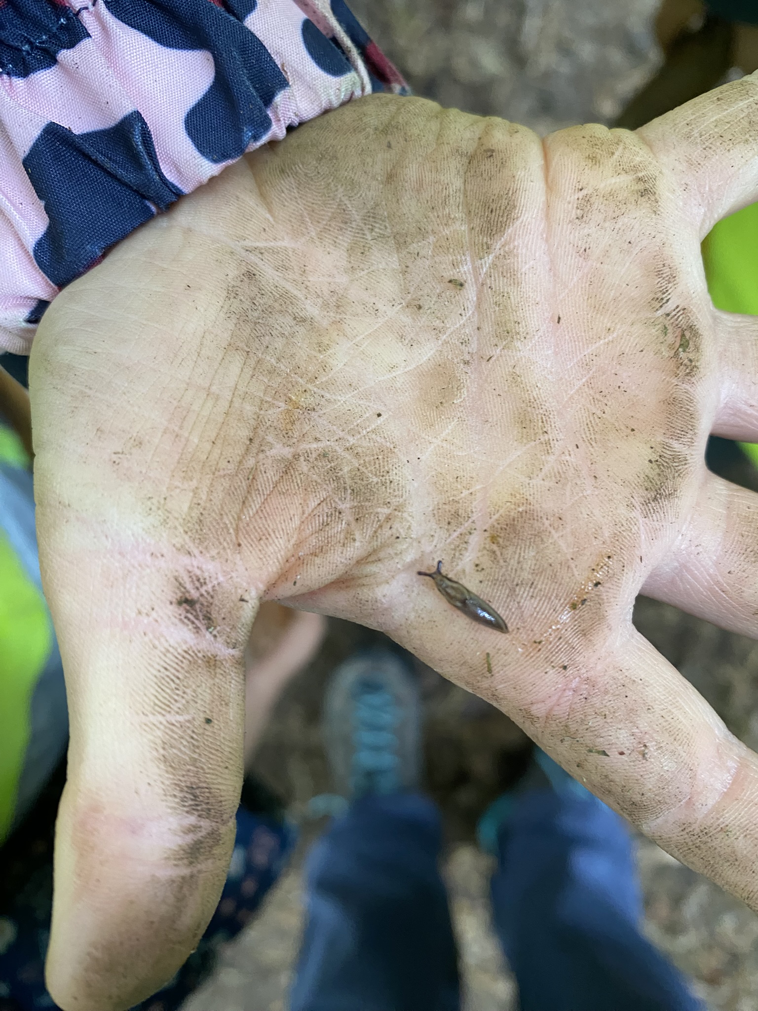 Am Weg in den Wald haben alle den Auftrag eine Wald-Eintritts-Karte zu sammeln, die so groß, wie die Handfläche ist (z.B. ein Blatt). Schon, bevor wir bei unserem Waldplatz angekommen sind, machen wir die ersten Entdeckungen. Wir sehen einen Feuersalamander und eine Schnecke. Beim Waldplatz singen wir unser Sonnenlied und legen die Wald-Eintritts-Karten in die Mitte des Kreises. Anschließend gehen wir gemeinsam die Grenzen unseres Waldplatzes ab, damit auch die Kinder, die zum ersten Mal mit dabei sind, diese kennen.